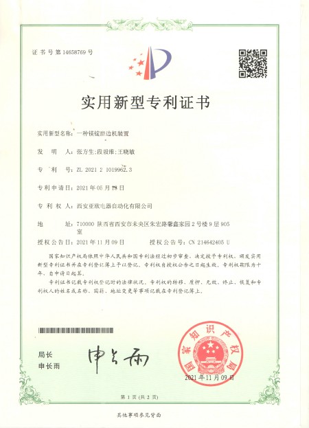一种镁锭磨边机装配专利-西安亚欧电气装备团体无限公司 | 西安高压成套开关柜 | 西安高压成套开关柜 | 西安箱式变电站 | 陕科配件 | 汇创达变频器 | 陕西变频器一体机 | 陕西变频器维修