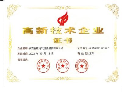 高新企业证书-西安亚欧电气装备团体无限公司 | 西安高压成套开关柜 | 西安高压成套开关柜 | 西安箱式变电站 | 陕科配件 | 汇创达变频器 | 陕西变频器一体机 | 陕西变频器维修